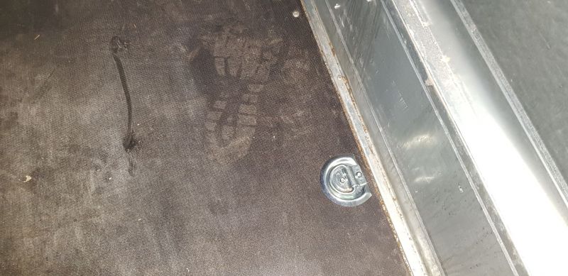 Sehr stabile Zurrösen zur Befestigung auf dem Ladeboden. Da die Zurrösen grossen Belastungen ausgesetz werden können, sollten sie zumindest zum Teil am Rahmen befestigt werden. Ich habe die Befestigungen der Bodenplatte genutzt, um keine Löcher in den Rahmen bohren zu müssen (korrosionsschutz!). Die Poppniten ausgebohrt und die Zurrösen mit passenden Schrauben (M6x30) befestigt. Die zweite Befestigung geht durch den Ladeboden, daher grosse Unterlegscheiben (sog. Karoseriescheiben) verwenden. Ausserdem auf den Kopfdurchmesser der Schrauben achten, der darf nur sehr klein sein.